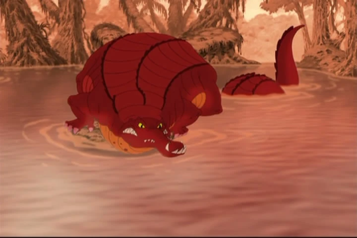 He first appears early into the film, and attempts to eat Littlefoot, but is stopped when Sue stomps on him. After Littlefoot, his grandparents, and Sue leave the scene, the Belly Dragger resurfaces, gasping for breath and frustrated, and then goes back underwater, waiting for new prey to come his way.